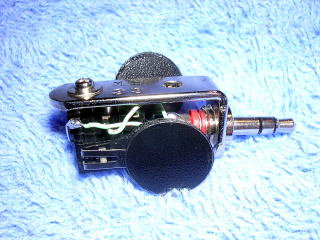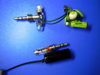 3.5mmのプラグにタクトスイッチを背中合わせに2つ取り付けたものと、接点としてリード線の切れ端を取り付けたものです。