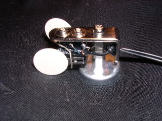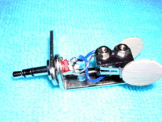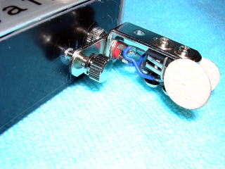 なお、手前の2本のビスはマイクロスイッチを取り付けるためのものですが、もう1本のプラグに一番近いビスはマイクロスイッチのヒンジレバーが開きすぎるのを押さえるためにスズメッキ線を固定しています。、
