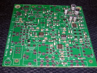 申し込みをし、入金をすませるとしばらくして小さな箱が届きました。製作マニュアルと操作マニュアルが入っていました。一枚の基板上に全てを組み込む形式です。今時のキットですからSMTの部品も使われていますが、それらは既に取り付け済みです。スルーホール部品だけを組み込めばよいので半日もかからず組みあがりました。