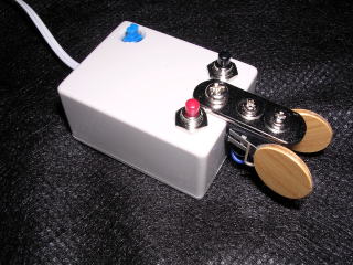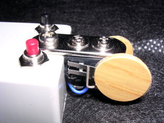 機構部分はMiniPaddle2などで使っているマイクロスイッチのパドルを、タカチ電機工業のSW-40というプラスティックケース(W30×H20×D40)に取り付け、中に回路部分を収納することにします。