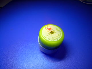 手元にブレスケアの容器がありましたので、その中に組み込みました。蓋が透明ですので、LEDはそのまま中に納めてあります。