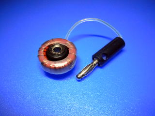 7MHzではT80-2のトロイダルコアに33Tを巻いたアダプタを給電部に取り付けることで整合させました。10MHzでは19Tを巻きました。ホイップからのバナナプラグをこのアダプタを介してBNCコネクタに接続します。